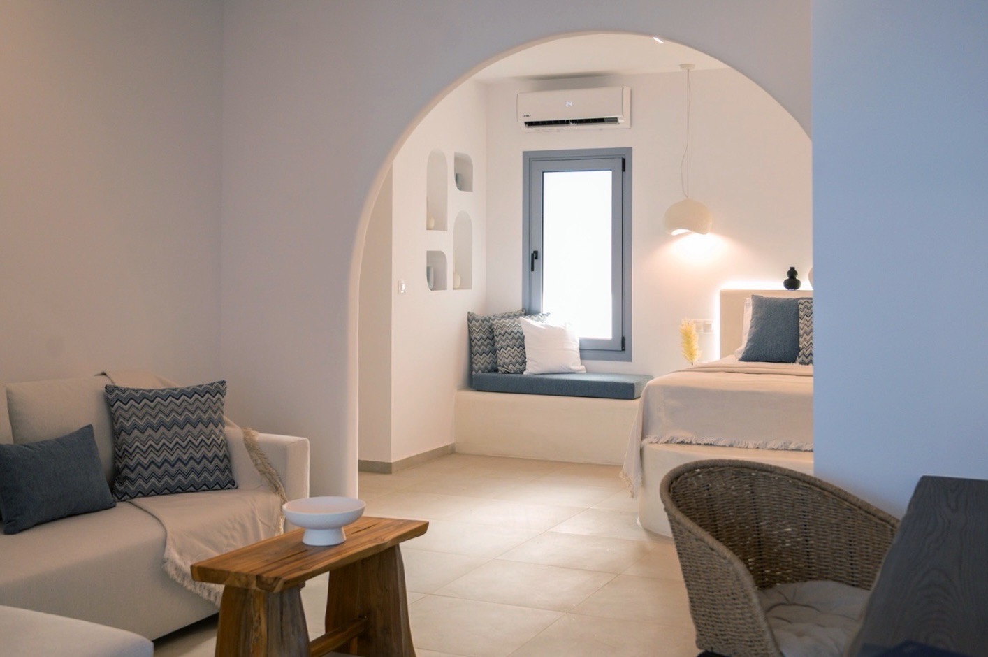 Layout: One bedroom, king size bed, living room,kitchenette area and private terrace with sea view.